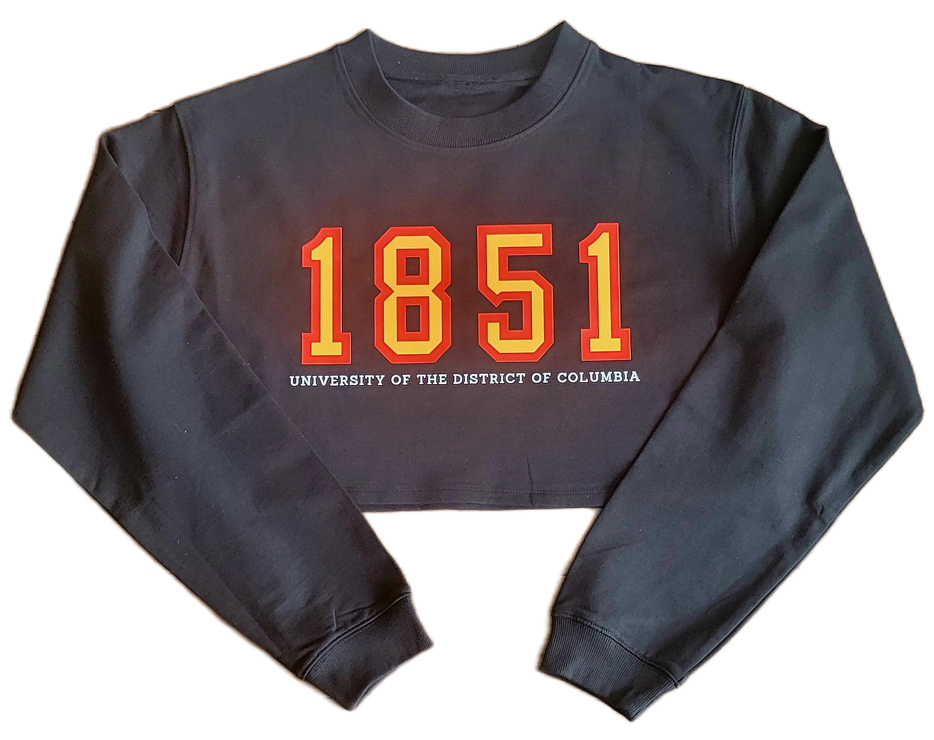 A effortlessly chic cropped sweatshirt inspired by UDC’s founding year—1851. Designed for comfort and flair, this piece pairs perfectly with high-waisted bottoms for a laid-back yet statement-making look. Ideal for fans of minimalist yet meaningful style.